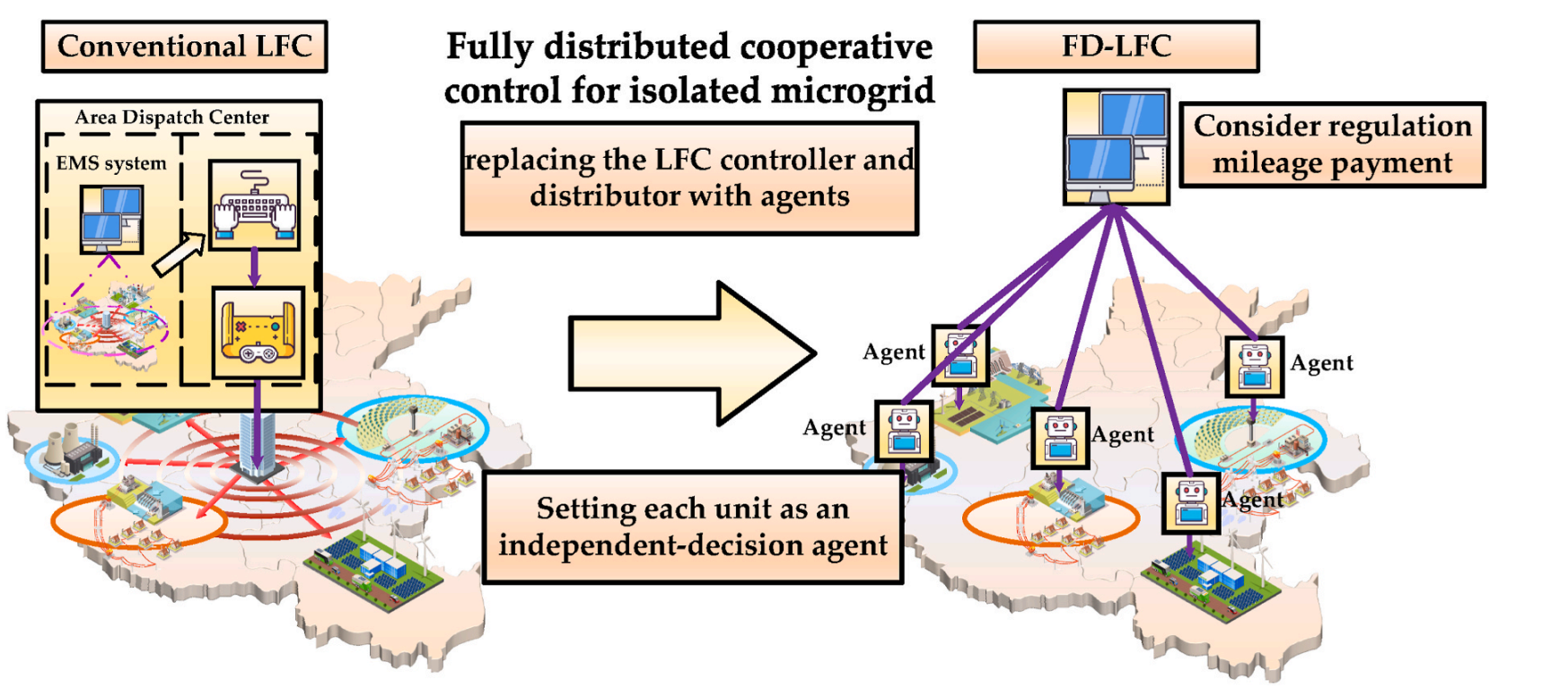 为促进产消者参与孤立微电网频率调节并解决基于性能市场机制带来的控制复杂性与运营商利益冲突问题,李嘉文副教授和崔昊杨教授及其团队创新性提出全分布式负荷频率控制方法,使作为独立智能体的调节服务提供商在线通过聚合本地频率达成全局最优决策,并在离线学习时设计兼顾自身与他人利益的奖励函数;该方法通过引入基于高价值轨迹元知识的知识先验多智能体深度元演员-评论家算法实现快速协作多任务学习,以生成高质量控制策略;在中国南方电网运营的永兴岛孤立微电网的实验评估证实FD-LFC能平衡提供商利益,有效降低频率误差、发电成本和调节里程支付。其工程价值在于为含产消者的孤立可持续能源系统提供了一种能同时优化系统频率稳定性、经济性并公平协调多市场主体利益的高效分布式频率控制方法,推进了清洁能源微电网智能运行与市场机制协同优化的发展。该成果以《Knowledge prior deep meta-reinforcement learning-based load frequency control of isolated sustainable energy system considering electricity prosumers》为题发表于《Journal of Cleaner Production》(中科院一区,IF=9.7)。